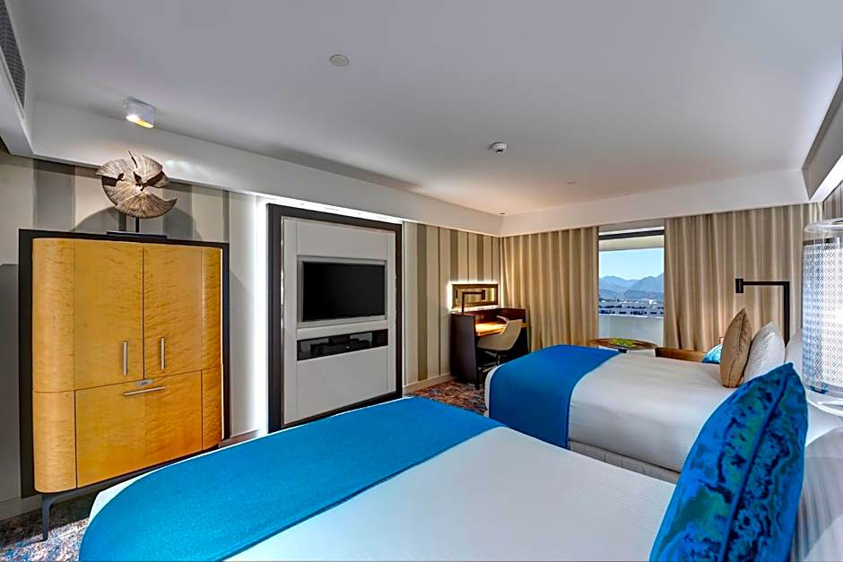 Twin bedded room featuring views over the Hajar mountains or the city with access to club lounge, this air-conditioned room features a balcony, a working desk, a safe and a mini-bar